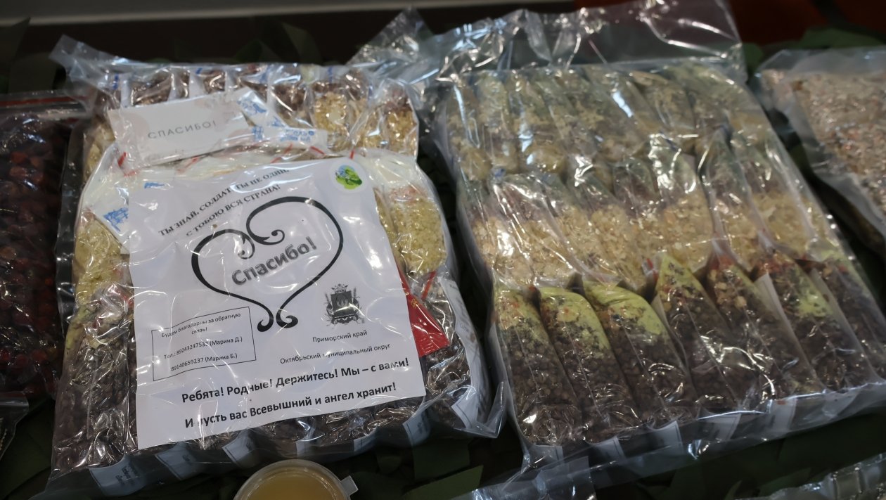 Волонтеры объединения "Приморский спицназ" из села Покровка Октябрьского района готовят для ребят натуральные супы, каши и кисели, используя технологию сушки, которая позволяет сохранить вкус и аромат домашних блюд в полевых условиях.