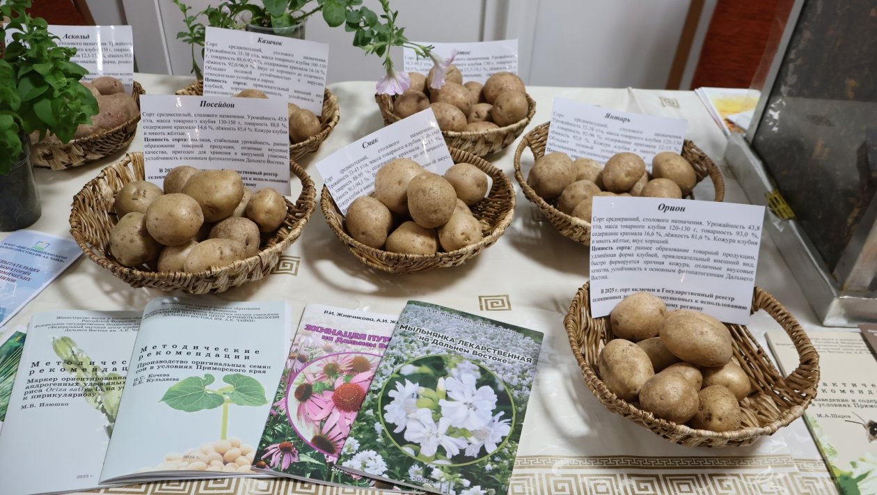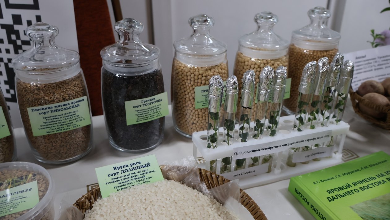 Научный потенциал региона представил ФНЦ агробиотехнологий Дальнего Востока им. А.К. Чайки из поселка Тимирязевский Уссурийского округа. Ученые обнародовали результаты многолетней селекционной работы, продемонстрировав семеноводческий материал риса, гречихи, пшеницы, новые сорта картофеля и образцы оздоровленного безвирусного картофеля.