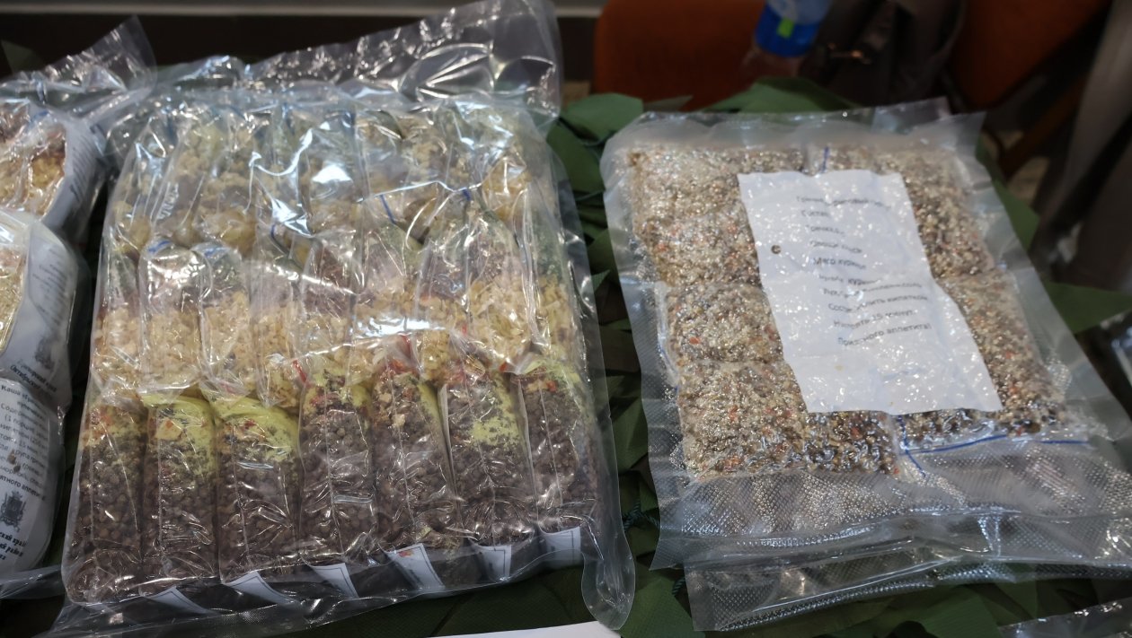 Готовые сушеные смеси упаковываются в порционные пакеты. Для приготовления еды бойцам достаточно лишь залить содержимое пакета кипятком, что обеспечивает возможность сытно и вкусно поесть даже в экстремальных условиях. Такой подход к организации питания помогает бойцам чувствовать заботу и поддержку.