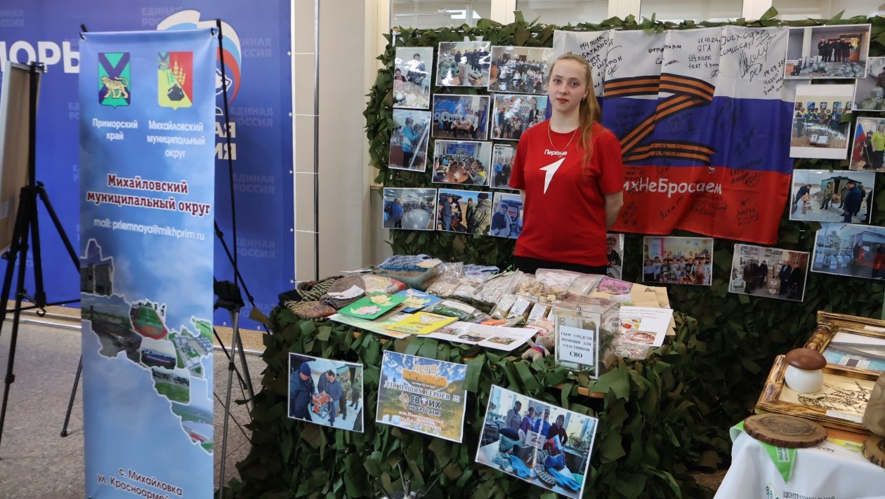 Особое место заняли образцы вооружения, применяемые в зоне проведения специальной военной операции, экспозиция уссурийского благотворительного фонда "Сила жизни" и волонтерских организаций Михайловского и Октябрьского округов, представители которых рассказали о своей работе по оказанию помощи бойцам.
