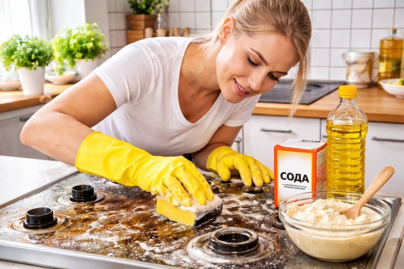 Обычные продукты, которые есть на каждой кухне, могут справиться с въевшимся жиром не хуже покупных средств. Один из таких способов — домашняя паста на основе пищевой соды и растительного масла. Она подходит для регулярной уборки и помогает быстро привести в порядок кухонные поверхности без лишних затрат.