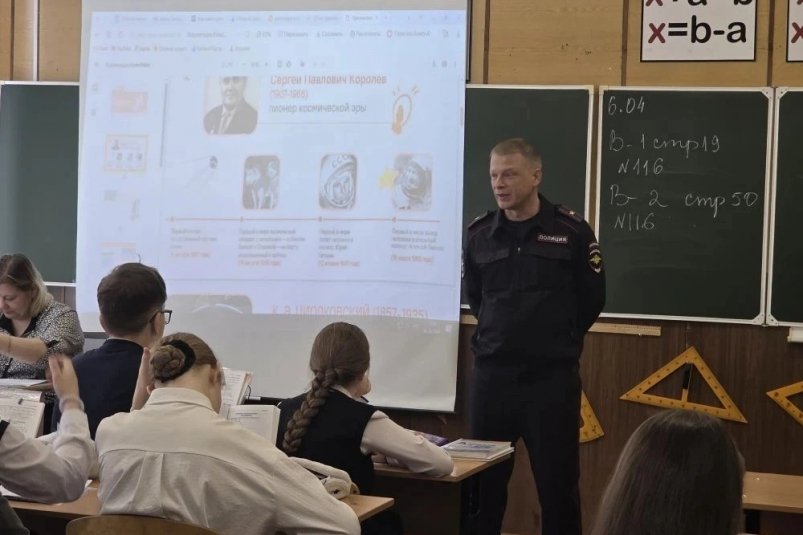 В тот же день инспектор побывал в школе № 1 Лесозаводска, где на внеурочном занятии "Разговоры о важном" рассказал третьеклассникам об истории освоения космоса. Дети уже знали имена Юрия Гагарина и Алексея Леонова, а также историю собак Белки и Стрелки и устройство космических кораблей.