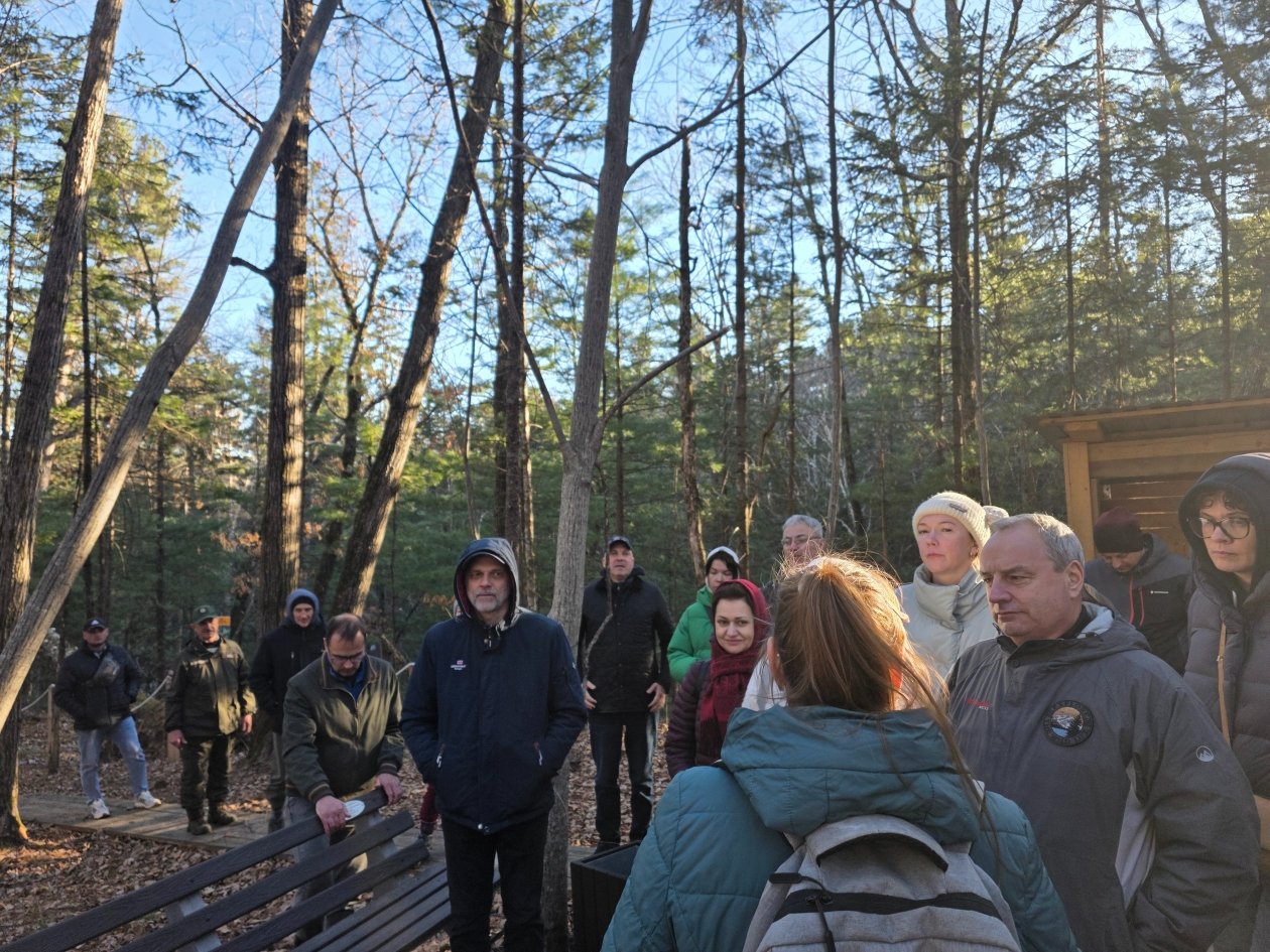 История жизни полосатых хищников на территории заповедника стала лейтмотивом прогулки. Гостям показали места регулярных выходов тигров, рассказали о методике их учёта по следам на снегу и объяснили, как фотоловушки помогают вести "перепись населения". Журналисты узнали, что "Бастак" — одна из ключевых территорий, где восстанавливается популяция краснокнижного амурского тигра.