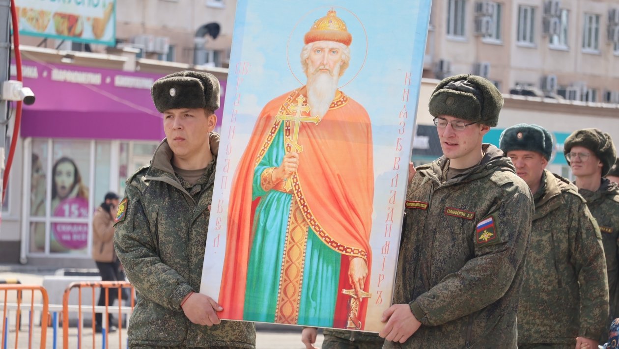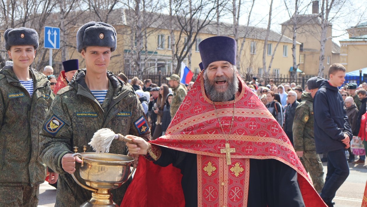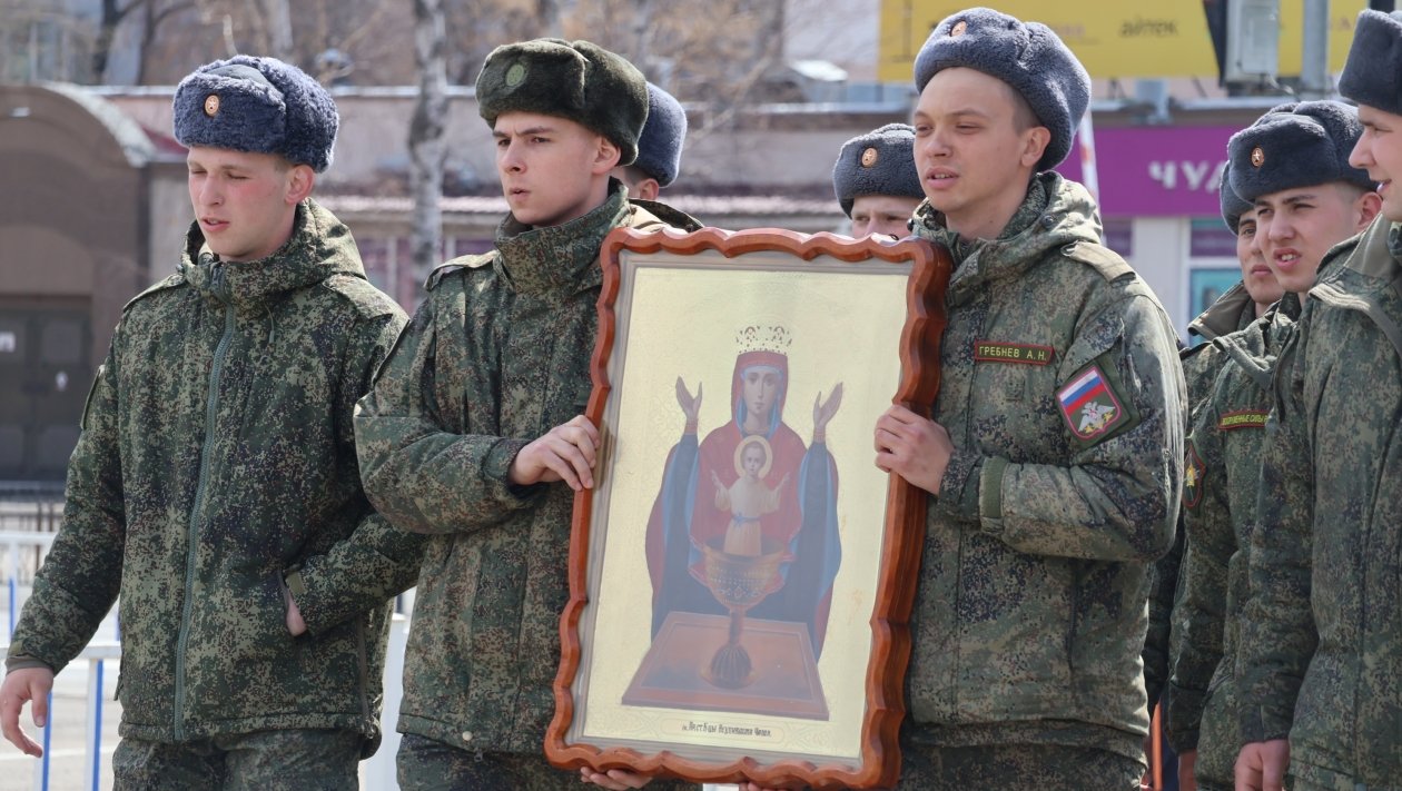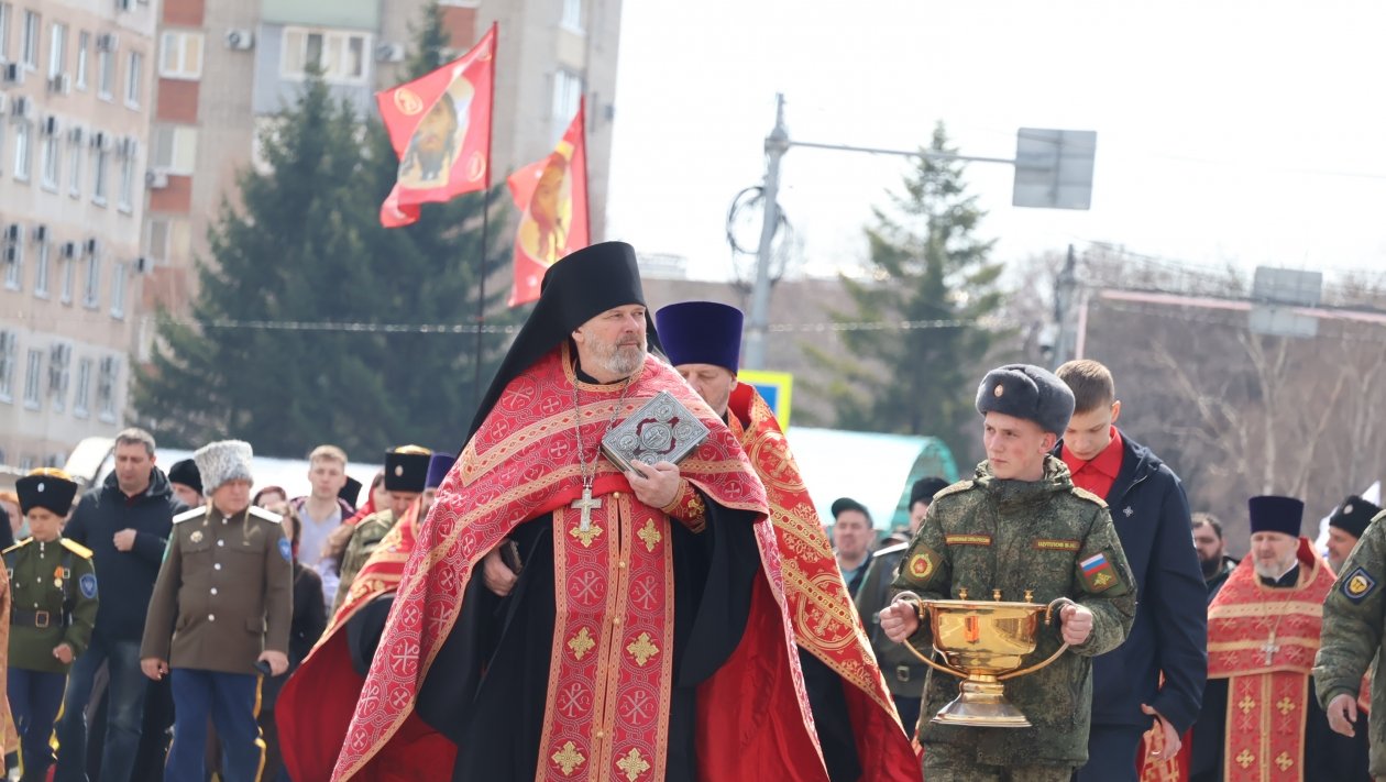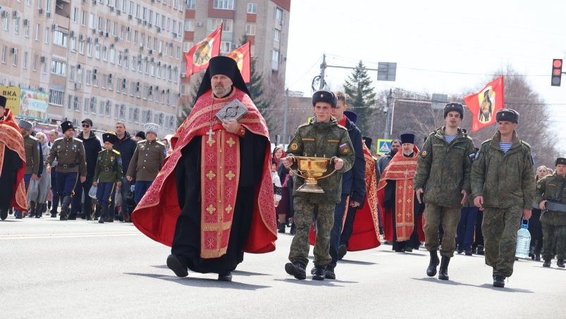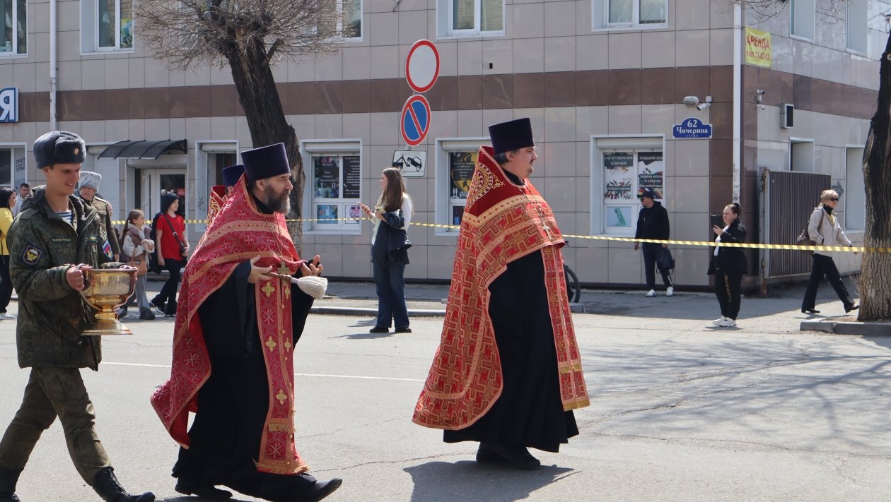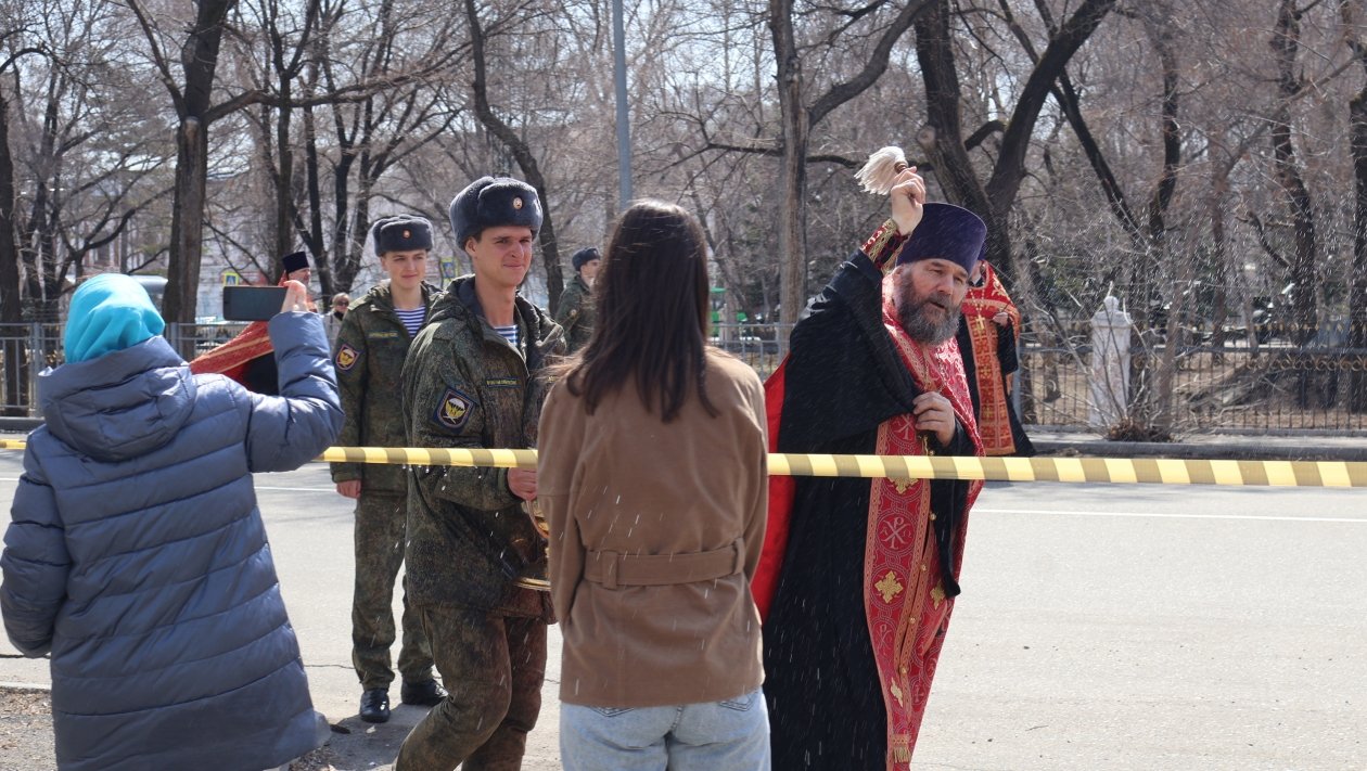 В колонне шли священнослужители, военнослужащие, казаки и прихожане. В крестном ходе приняли участие около 150 военнослужащих Восточного военного округа из частей Уссурийска.