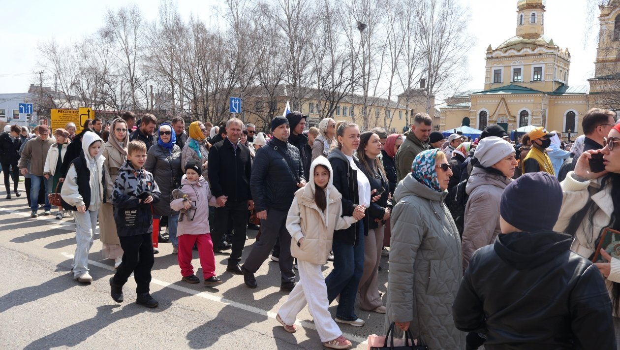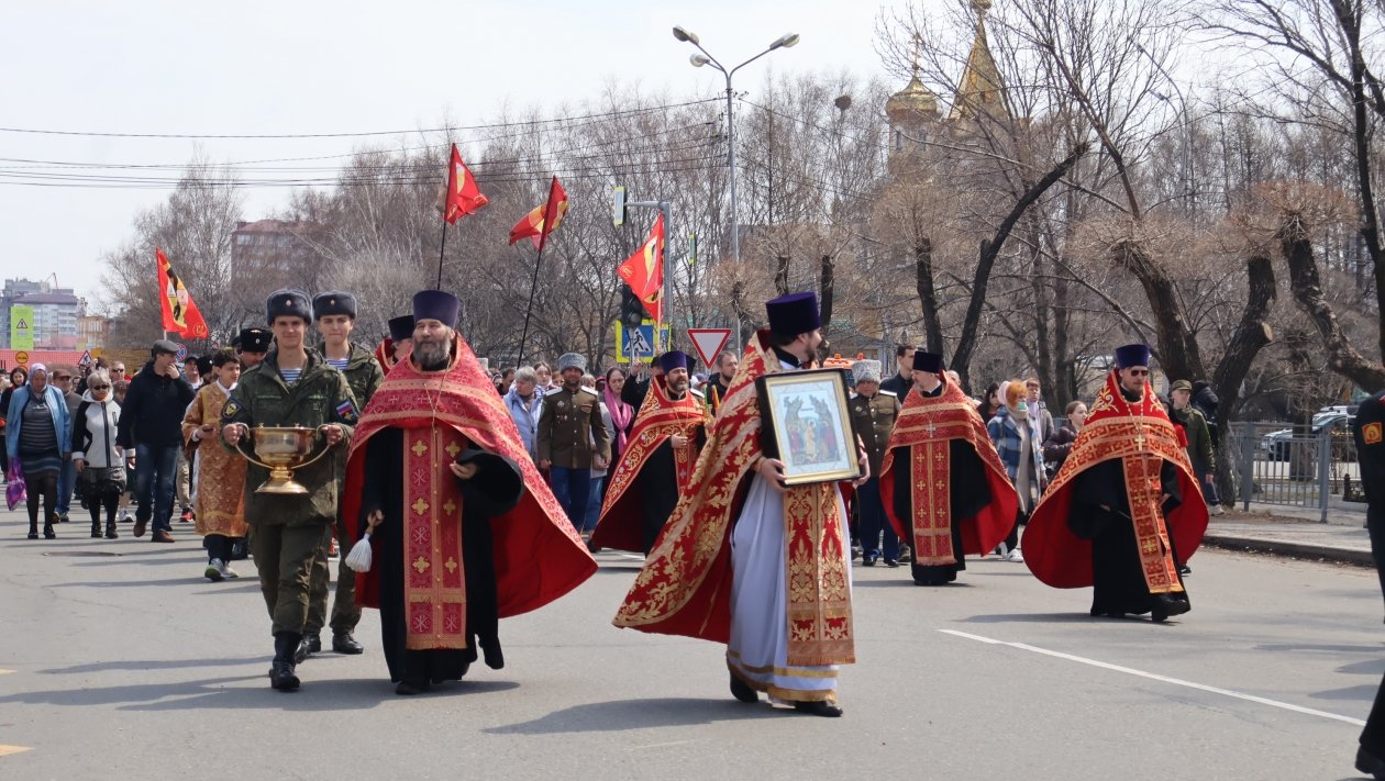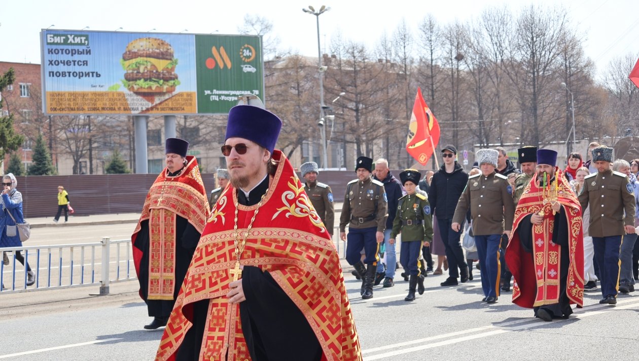 Сегодня, 12 апреля, в Уссурийске прошёл крестный ход, объединивший около 700 человек. Шествие началось от храма Покрова Пресвятой Богородицы на улице Чичерина и завершилось у храма святителя Николая Чудотворца на улице Комарова.