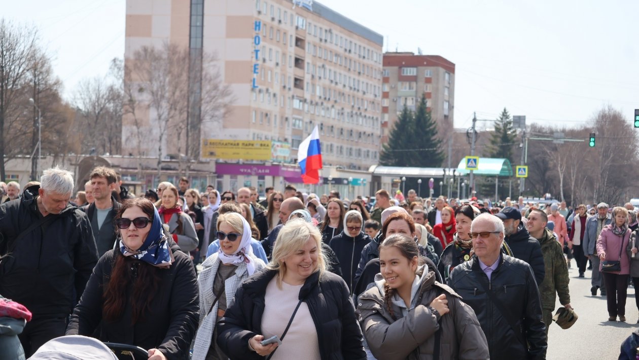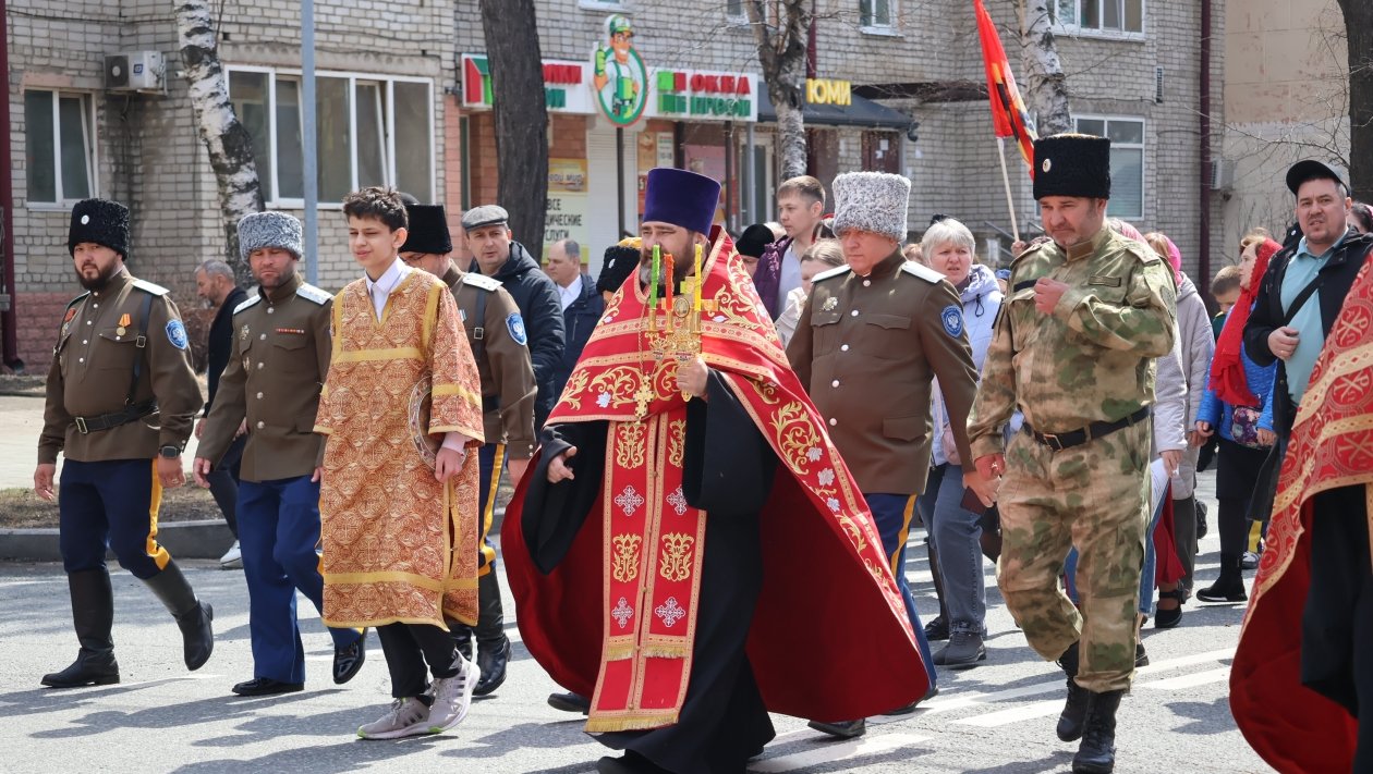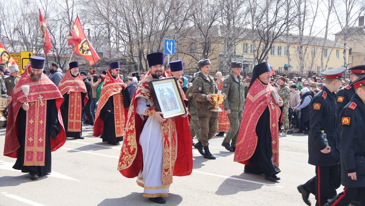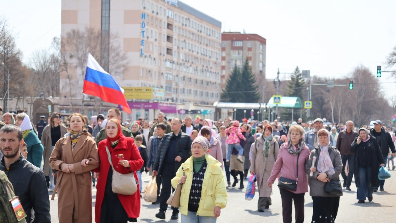 Сегодня, 12 апреля, в Уссурийске прошёл крестный ход, объединивший около 700 человек. Шествие началось от храма Покрова Пресвятой Богородицы на улице Чичерина и завершилось у храма святителя Николая Чудотворца на улице Комарова.