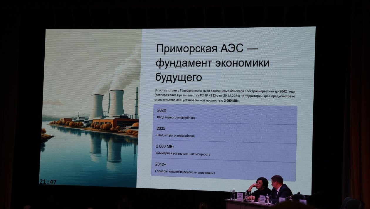 "Почему именно АЭС? Для нас это, во‑первых, самый экологичный, как я считаю, источник генерации. Два новых блока Приморской АЭС дадут порядка 2 000 мегаватт — это позволит не только закрыть текущий дефицит, но и создать задел под прогнозируемый рост потребления, который к 2030 году превысит 3 000 мегаватт. Нам нужно не догонять ситуацию, а идти впереди нее", — подчеркнула Елена Шиш.