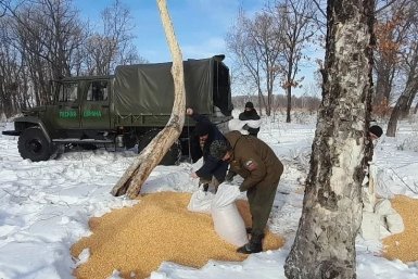 Кукурузу и соль-лизунец привезли копытным заказника "Среднеуссурийский"