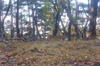 Дальневосточный леопард бродит в Уссурийском округе