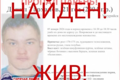 Завершены поиски 21-летнего парня, пропавшего 5 января в Уссурийске