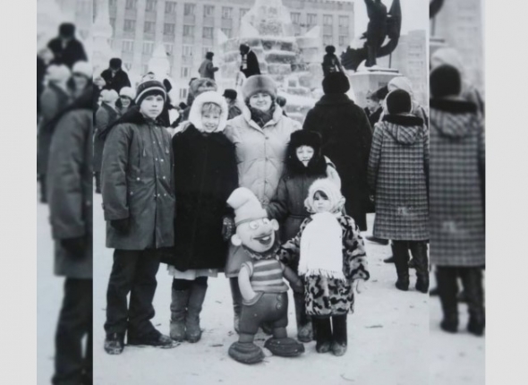 На фотографии 1990 год. Центральная площадь Уссурийска. Это был самый невероятный ледовый городок: огромные замки, церковь, скульптуры высотой в рост со взрослого человека. На моей памяти такого больше не было никогда. Я на фотографии самая маленькая рядом с гномиком. Кстати, раньше эти гномики были очень популярны, до сих пор у многих можно встретить фотографии с ним из разных районов города.