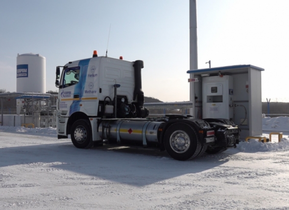 Заправка тягача КАМАЗ сжиженным природным газом на УСПГ "Газпром гелий сервис" в ТОР "Надеждинская"