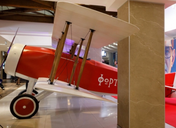 Московский показ был посвящен будущему. Гостей встречала ледяная фигура авиатора Платонова и его самолет — тот самый, что в картине летит сквозь время.