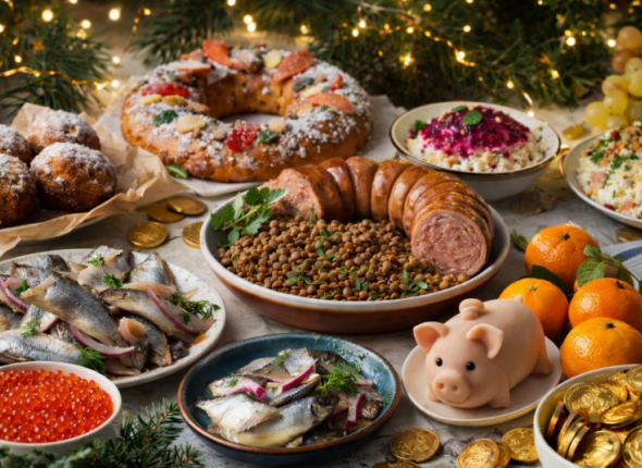 UssurMedia, 9 января. Есть примета, которой следуют миллионы людей по всему миру, чтобы новый год был удачным, его нужно правильно съесть. Новогодний стол — это не просто еда, а настоящий обряд. Каждое блюдо играет роль символа, притягивающего удачу, здоровье и процветание. Эта традиция существует веками. Раньше с помощью праздничных угощений люди как будто "заказывали" у судьбы благополучие на весь год. И хотя в каждой стране свои рецепты и ритуалы, суть остаётся одинаковой — год должен начаться вкусно и щедро.