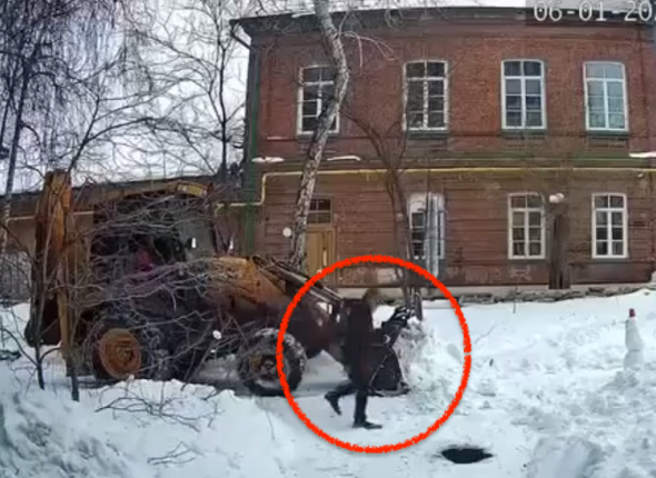 Водитель остановился, вышел из кабины и отнес снеговика на безопасное место, чтобы не зацепить его ковшом. После этого рабочий продолжил расчистку снега. Кадры опубликовал tg-канал "primlive25" (18+).