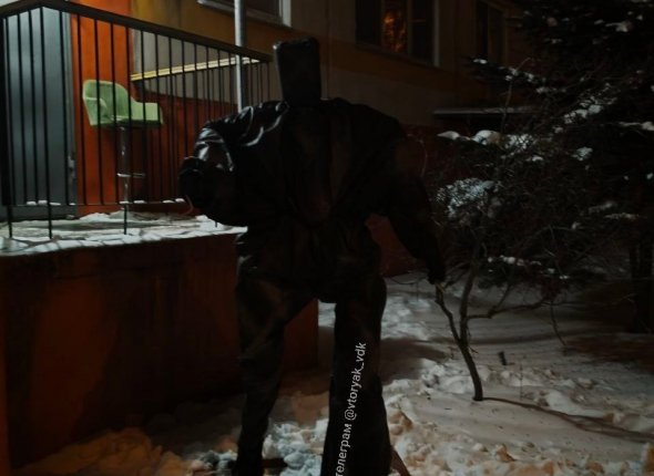 PrimaMedia, 20 января. Необычный арт-объект установили жители в районе Второй Речки. Возле подъезда "красуется" статуя, похожая на человека, но только с квадратной головой. Очевидцы отмечают, что получилось достаточно креативно, но вот в темное время суток зрелище достаточно пугающее.