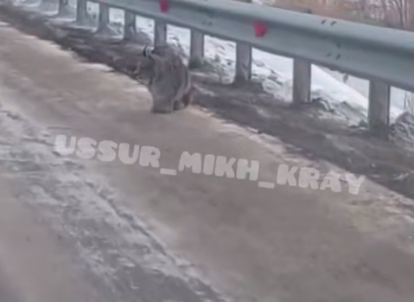 PrimaMedia, 23 января. Грустную рысь заметили на обочине дороги в окрестностях села Лазо в Приморье. Очевидцы сняли хищницу на видео, где она спокойно сидит у трассы, словно ждет попутный автомобиль.
