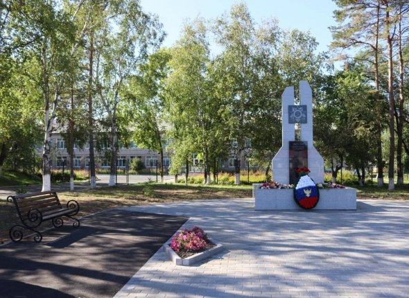 Монумент в Корсаковке — примерно в 50 м на север от администрации по ул. Комсомольская, 12.