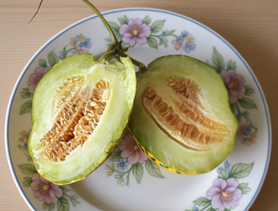 Гибрид огурца и дыни, внешне похожий на огуречную плеть, но с более крупными листьями и длинными лианами (до 2 м+).