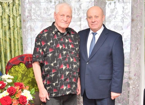 Мэр Хабаровска Сергей Кравчук поздравил юбиляра-фронтовика Юрия Ласькова