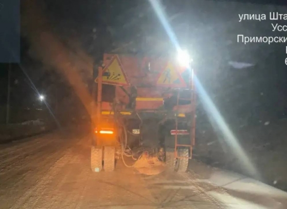 UssurMedia, 7 февраля. В Уссурийске ночью подрядные организации провели механизированную уборку снега и обработку дорог против гололеда. На центральных улицах — Комсомольской, Ленинградской, Пушкина, Советской, Горького и участке Краснознамённой от Пушкина до Агеева — убрали уплотнённый снег и наледь, сообщает администрация города в своем тг-канале (18+).