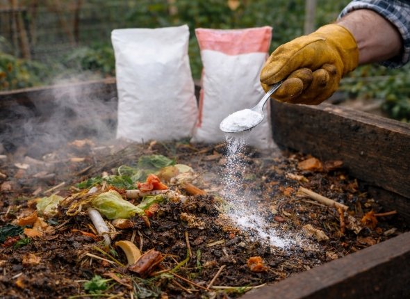 Мочевина — это органическое удобрение, которое способствует образованию высокой температуры внутри компостной кучи. Температура играет ключевую роль в быстром разложении органических материалов. Мочевина также помогает бороться с болезнетворными бактериями и другими микробами, которые замедляют процесс разложения.