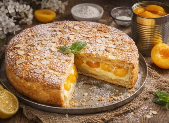 UssurMedia, 16 февраля. Иногда самые эффектные десерты рождаются из простых продуктов. Обычная банка консервированных персиков, немного времени и базовые ингредиенты — и на столе появляется пирог, который легко можно принять за выпечку из хорошей европейской пекарни. Нежное песочное тесто, лёгкий заварной крем и сочная фруктовая начинка делают этот десерт универсальным: и к вечернему чаю, и для гостей, и "просто порадовать себя".