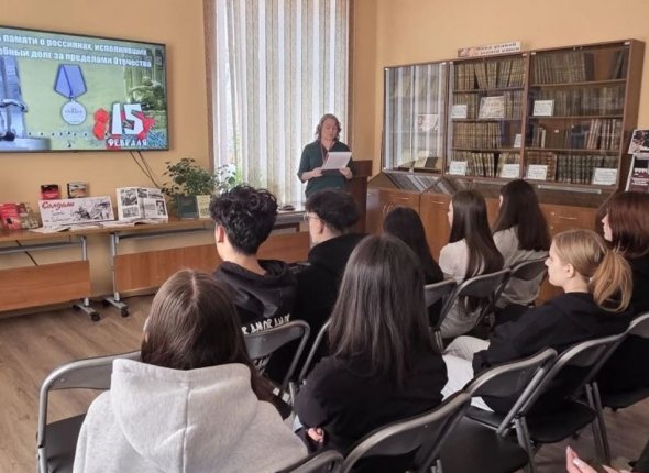 UssurMedia, 16 февраля. 15 февраля — День памяти о россиянах, исполнявших служебный долг за пределами Отечества. В честь этой даты в Центральной городской библиотеке Уссурийска прошел информационный час "Солдат войны не выбирает" (12+) для студентов Уссурийского колледжа технологии и управления.