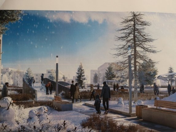 Здесь должен появиться сухой фонтан с динамической интерактивной подсветкой, камерный амфитеатр, рассчитанный на 50–60 зрителей, новые скамейки и функциональные павильоны. В последних разместятся кафе, информационный центр, санузлы и комната матери и ребенка.