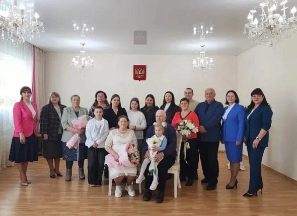 Торжественная церемония (0+) в честь 50-летнего юбилея совместной жизни Василия Андреевича и Людмилы Сергеевны Демьяненко прошла в отделе ЗАГС Хорольского муниципального округа. Сотрудники дворца бракосочетаний поздравили "золотую" пару, пожелав им крепкого здоровья, мира и благополучия.