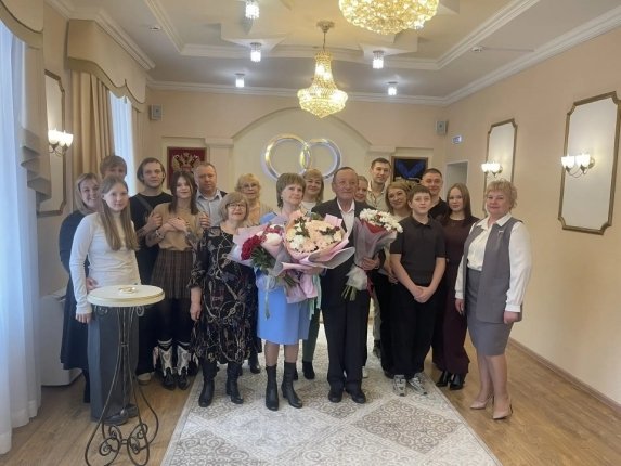 "Юбиляры обменялись золотыми кольцами, получили свидетельство о заключении брака с отметкой "золотое", расписались в Почетной книге, получили цветы и Памятный адрес", — говорится в сообщении.