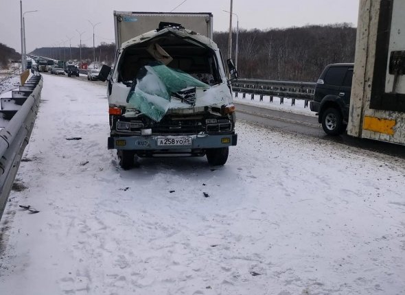 20 марта около 11:05 на трассе А-370 "Уссури" Хабаровск — Владивосток" произошло ДТП. 25-летний водитель микрогрузовика Toyota Duna, ехавший со стороны Владивостока в сторону Хабаровска, не выдержал дистанцию до впереди идущего автобуса НефАЗ 4208-25 и врезался в него, сообщает Госавтоинспекция Уссурийска.