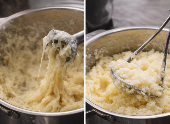 4. Ещё один нюанс — длительное перемешивание. Чем дольше обрабатывается картофель, тем больше крахмала выделяется. Поэтому после достижения однородности лучше остановиться.