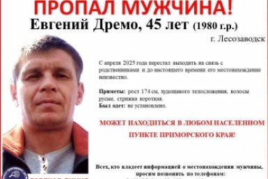 Пропавшего 10 месяцев назад мужчину разыскивают в Приморье